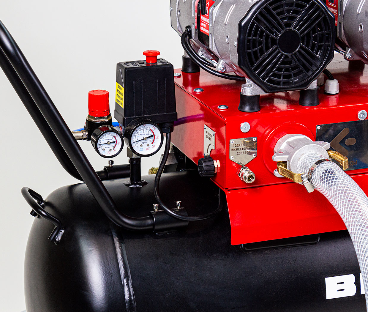 Компрессор позволяет выполнять промывку трубопроводов многоквартирных домов. Без инжектора и редуктора
