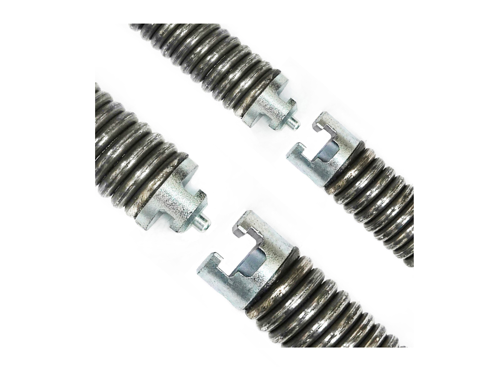 Спирали имеют высокую стабильность и жесткость на кручение. Температуро- и атмосфероустойчивые. Снабжены пластмассовым сердечником, который предотвращает проникновение грязи внутрь спирали. Универсальный Т образный замок, обеспечивает надежное сцепление спиралей между собой или с насадками. Секционная схема соединения позволяет работать с необходимым количеством сегментов.