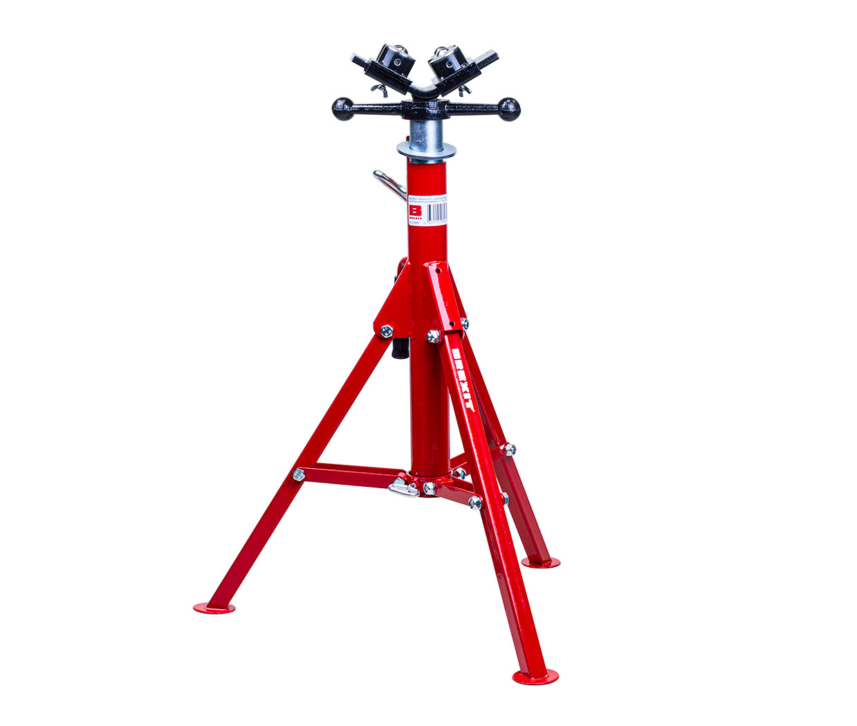 Опора BREXIT. Высокая складная, с роликовой головкой. Предназначена для труб диаметром до 300 мм. Регулируемая высота от 710 до 1320 мм.